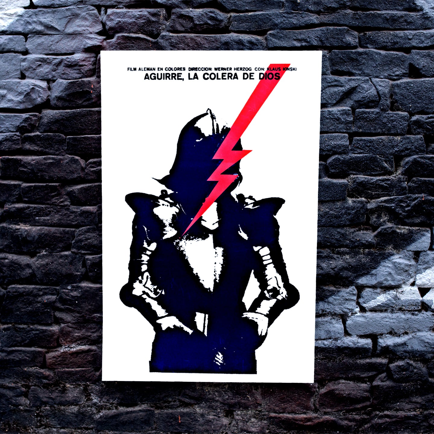 - ARTISTIC DESIGN: Spanish language movie poster featuring high-contrast monochromatic imagery from Werner Herzog's acclaimed film