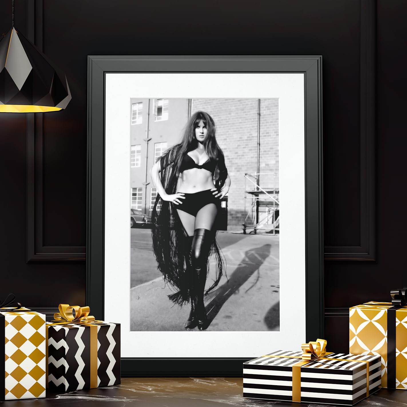 - VINTAGE AESTHETIC: Black and white fashion photography print capturing a dramatic gothic style portrait against an urban backdrop