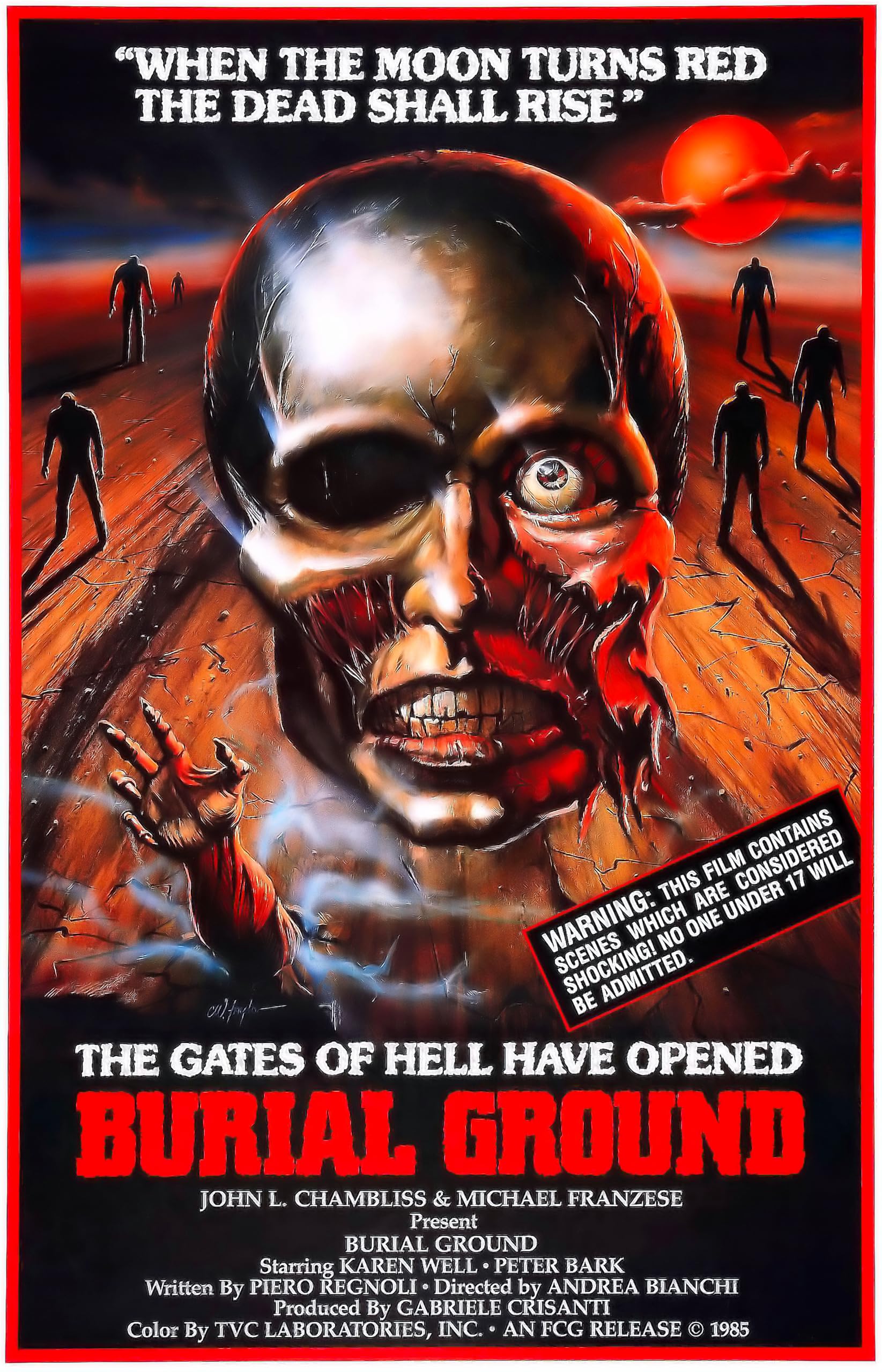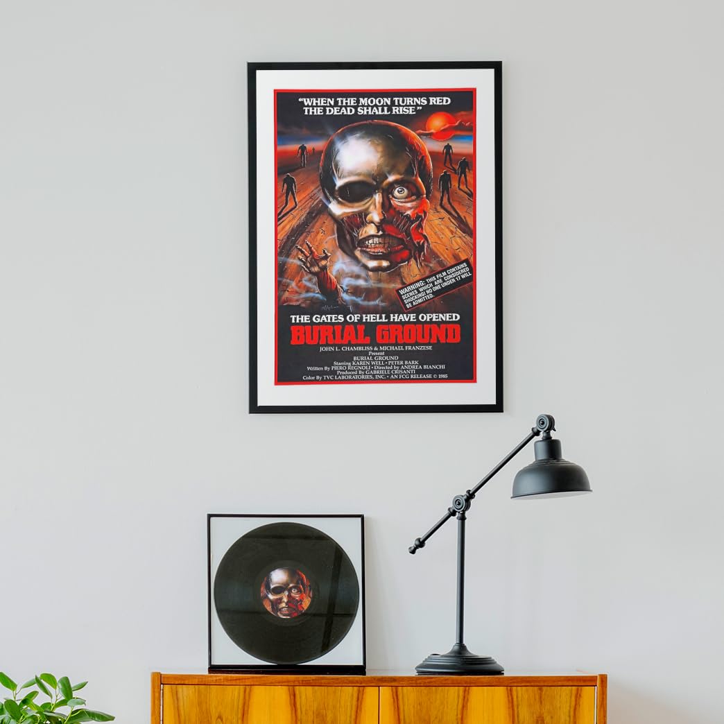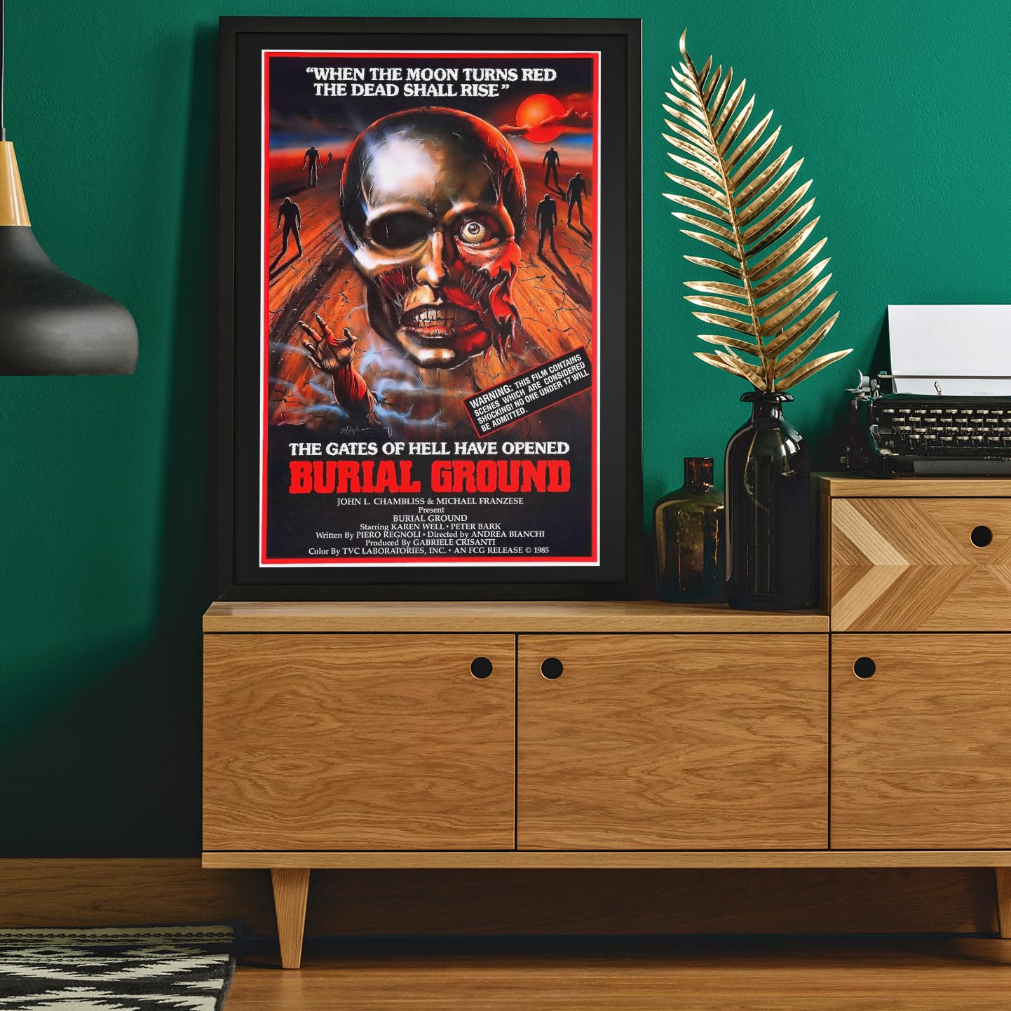 - AUTHENTIC DESIGN: Classic horror movie poster print featuring the 1985 Italian zombie film 'Burial Ground' with striking red and black artwork