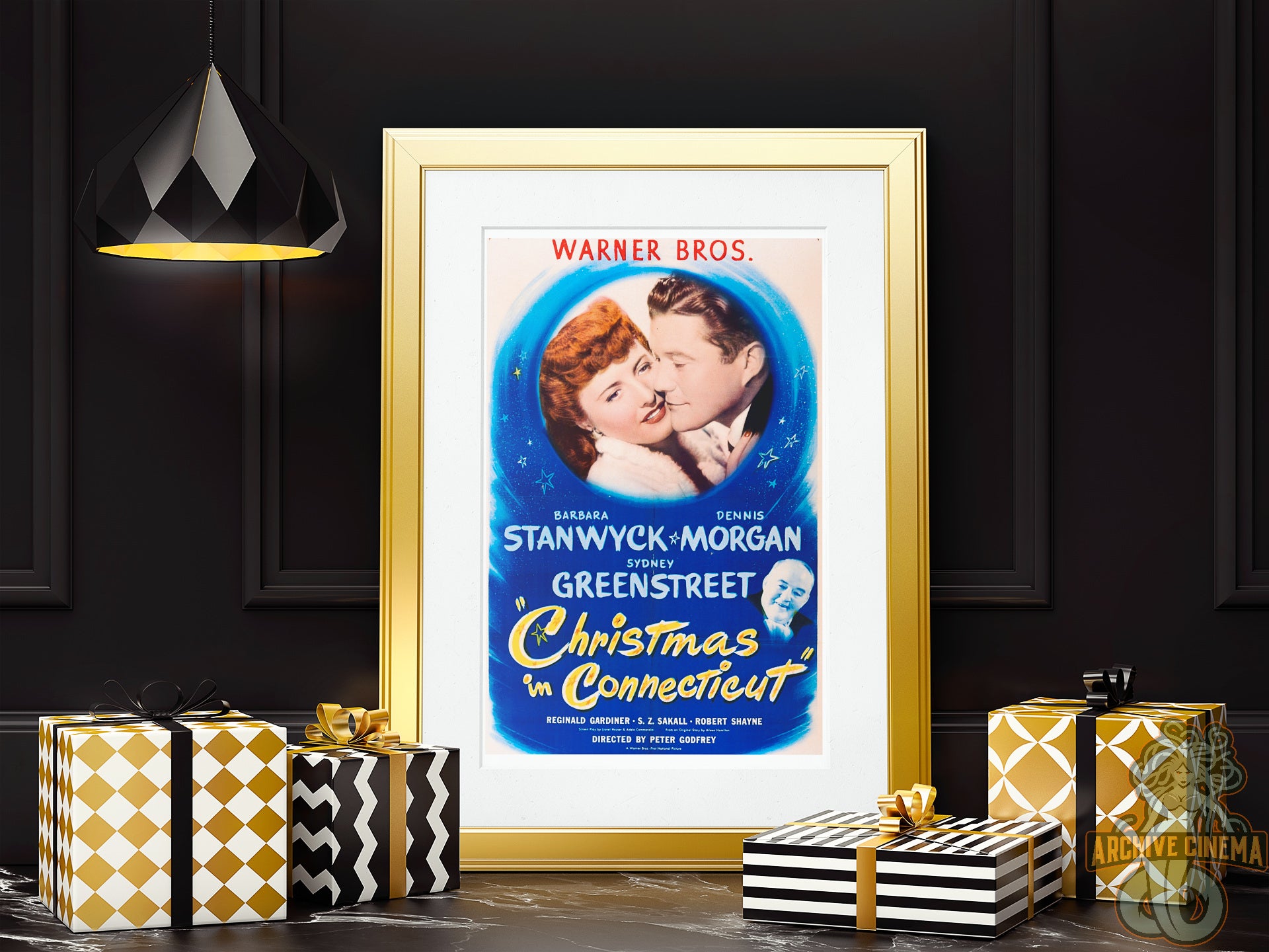 - CLASSIC DESIGN: Authentic Warner Bros. movie poster featuring the beloved Christmas romantic comedy 'Christmas in Connecticut' with iconic holiday charm