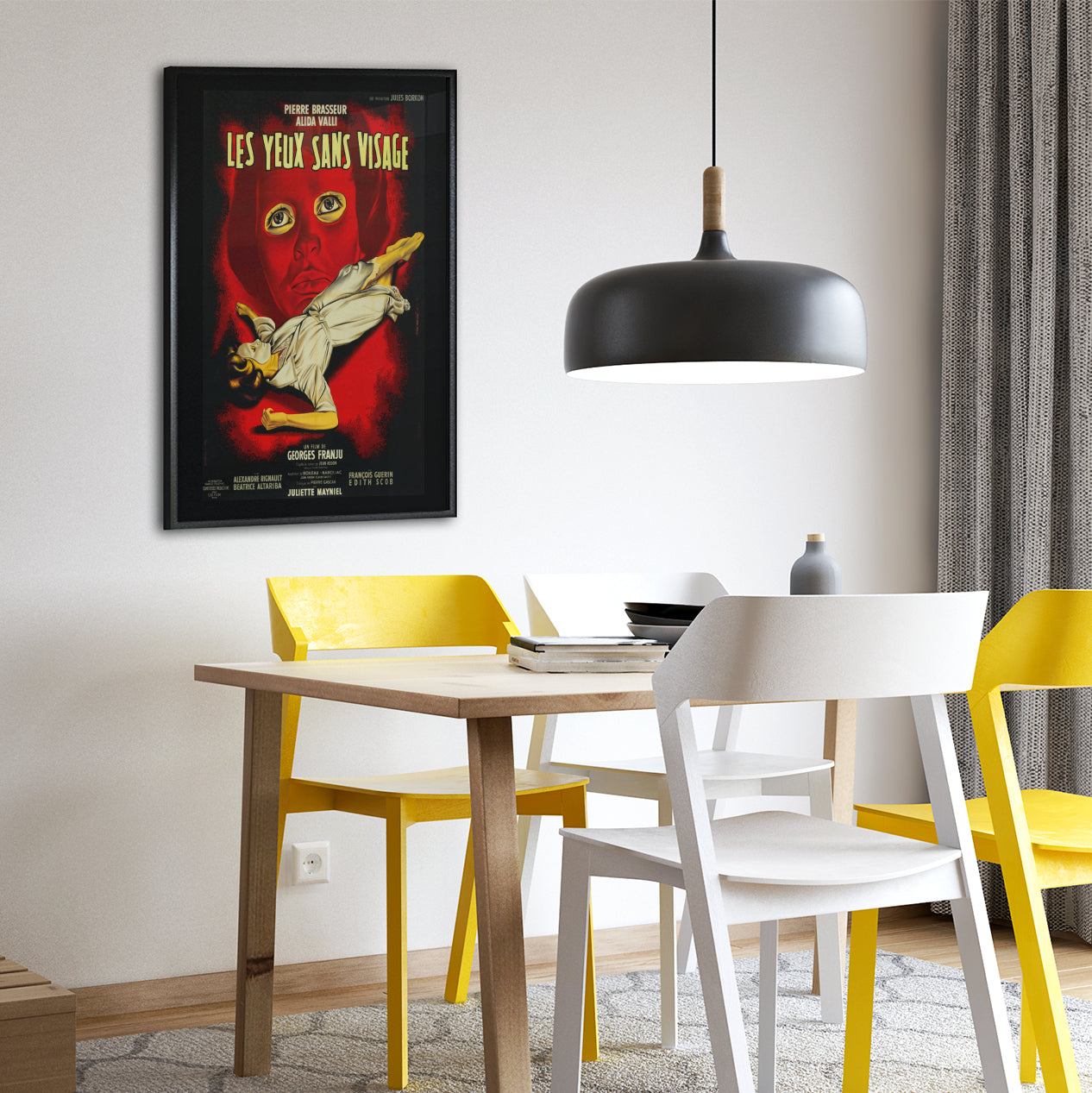- VINTAGE DESIGN: Authentic reproduction of the iconic 1960 French horror film poster 'Les Yeux Sans Visage', capturing the haunting atmospheric artwork of the classic thriller