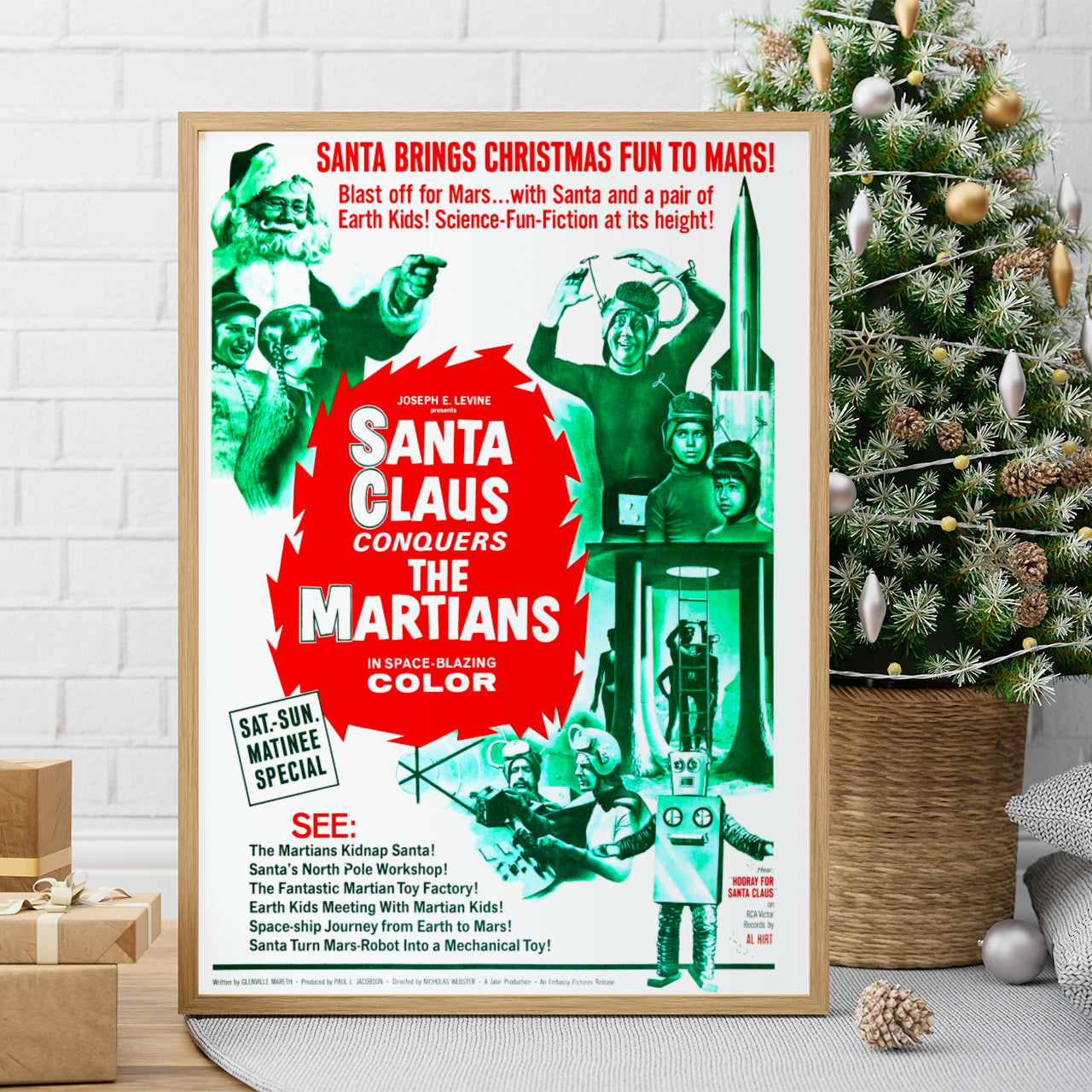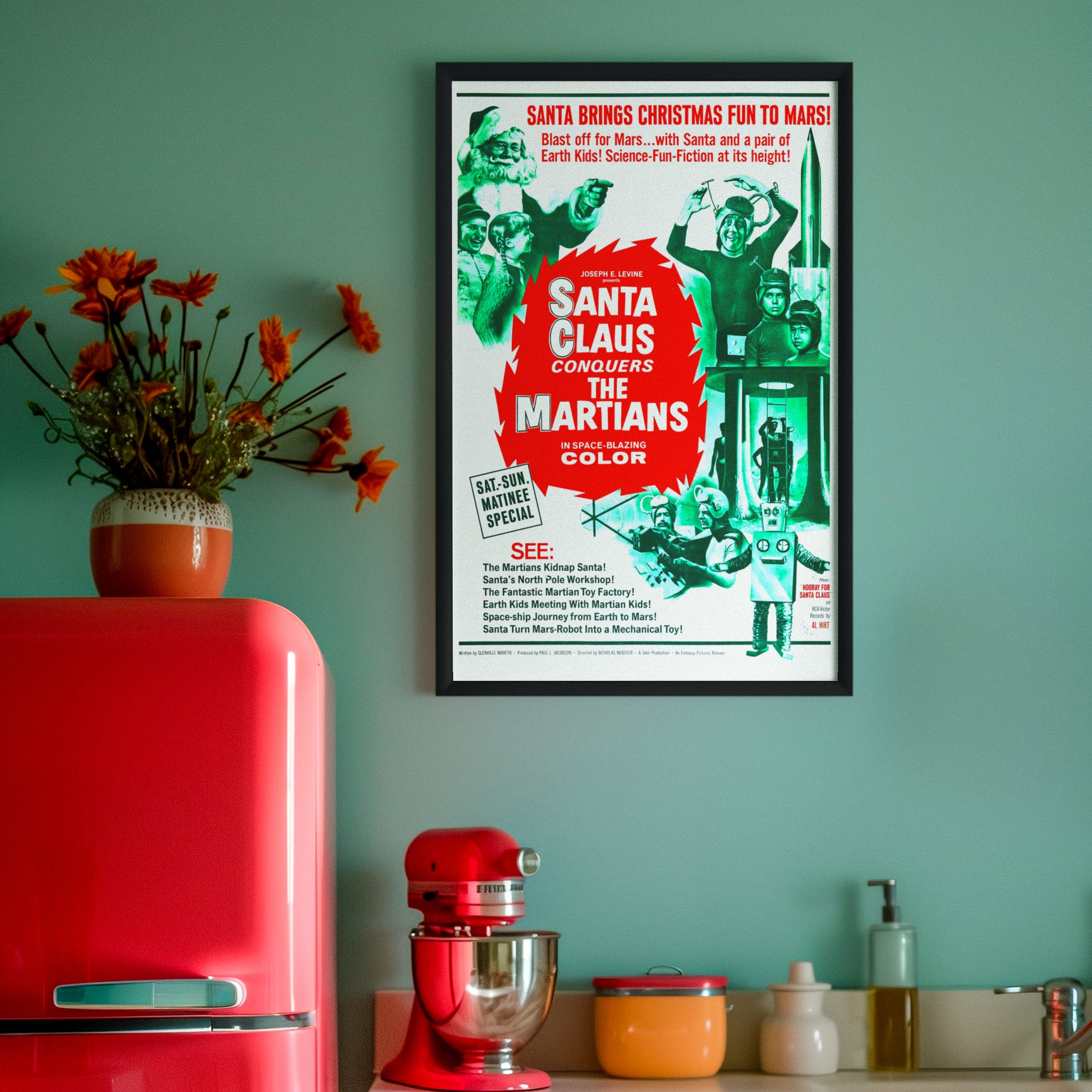 - VINTAGE DESIGN: Classic movie poster art print featuring Santa's interplanetary adventure, perfect for holiday and retro space-themed decor