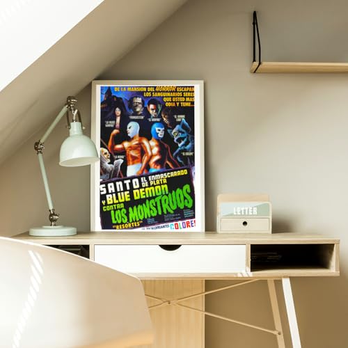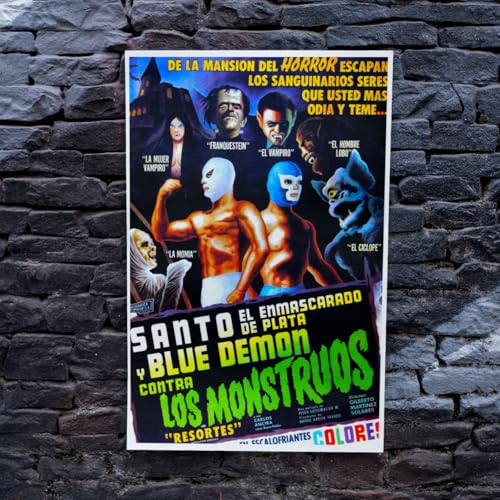 - SIZE AND DESIGN: Measures 11 x 17 inches, featuring iconic Mexican wrestlers Santo and Blue Demon battling classic movie monsters