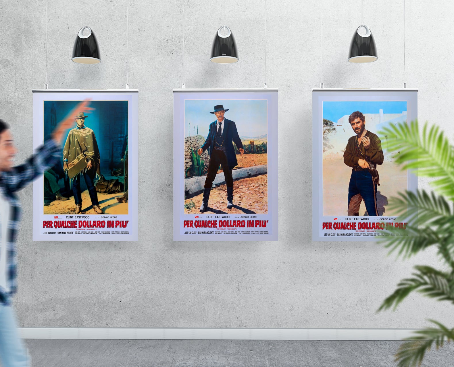 - AUTHENTIC DESIGN: Set of three 11" x 17" high-quality movie posters featuring iconic scenes from the classic Spaghetti Western 'For a Few Dollars More'