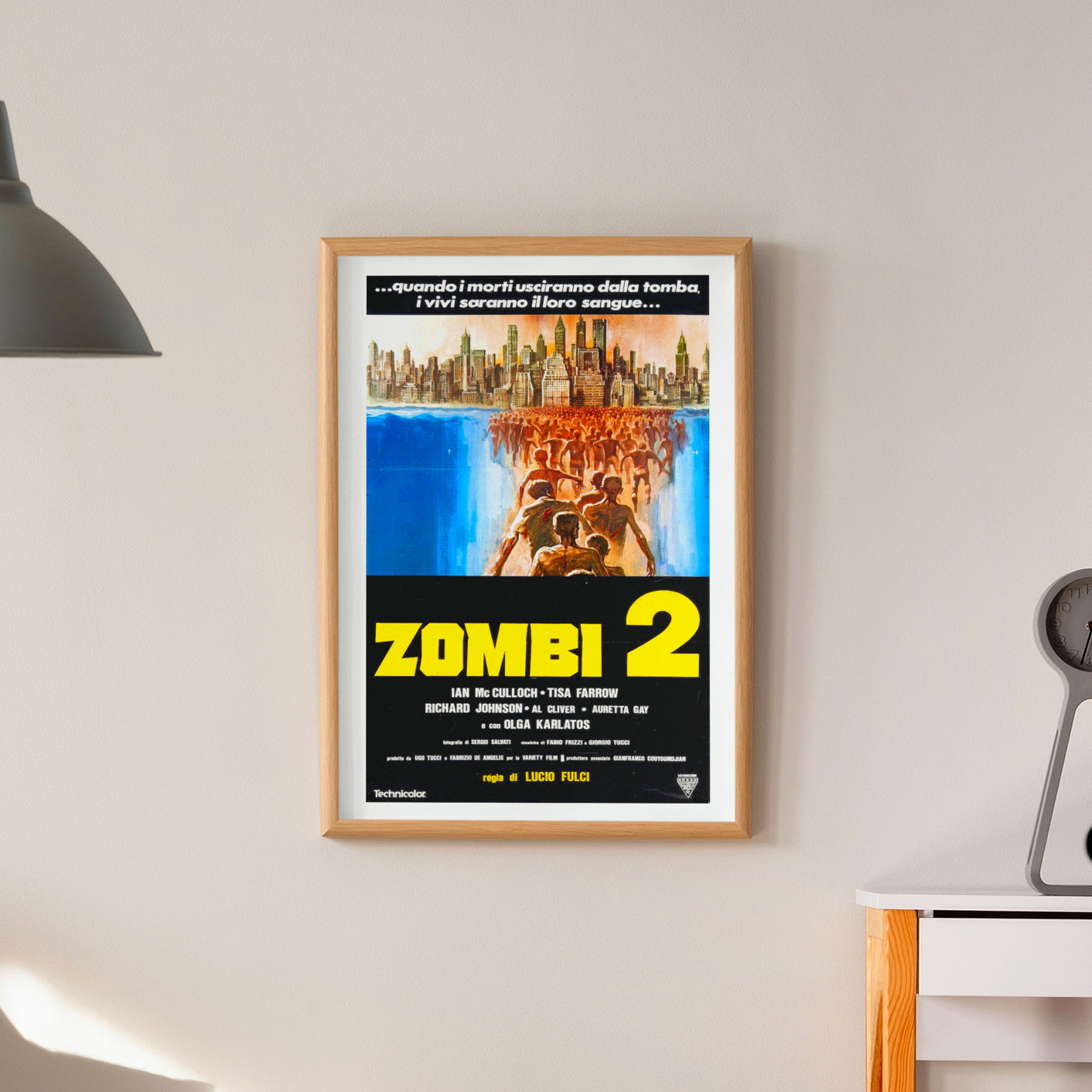 - VINTAGE DESIGN: Authentic reproduction of the original 1979 Italian horror movie poster for Zombi 2, directed by the legendary Lucio Fulci
