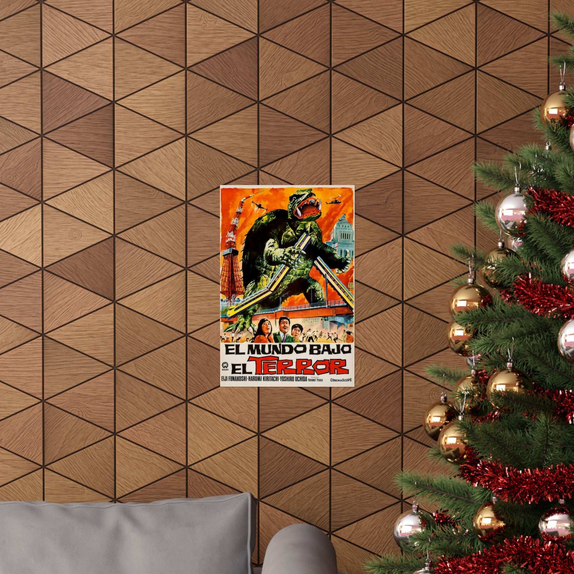 Gamera the Invincible flying turtle saves mankind yet again in the aptly named 'Gamera the Invincible'. This kaiju poster exudes a retro vibe, perfect for fans of classic monster movies. Ideal for movie enthusiasts, sci-fi fans, and kaiju collectors looking to decorate their walls with a unique piece of art. Great for movie nights, sci-fi conventions, and Halloween decorations.