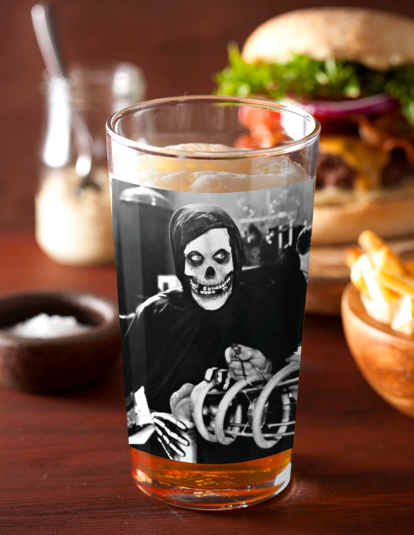 This fun mixing glass is perfect for fans of the Crimson Ghost serial from the 1940s and the later punk bank the Misfits (who used the skeletal villain as their own mascot). It can be used for making mixed drinks or as a regular glass. The vibrant colors and skull-faced design add a unique touch to your kitchen or bar. Ideal for Halloween parties, music lovers, and vintage horror enthusiasts.